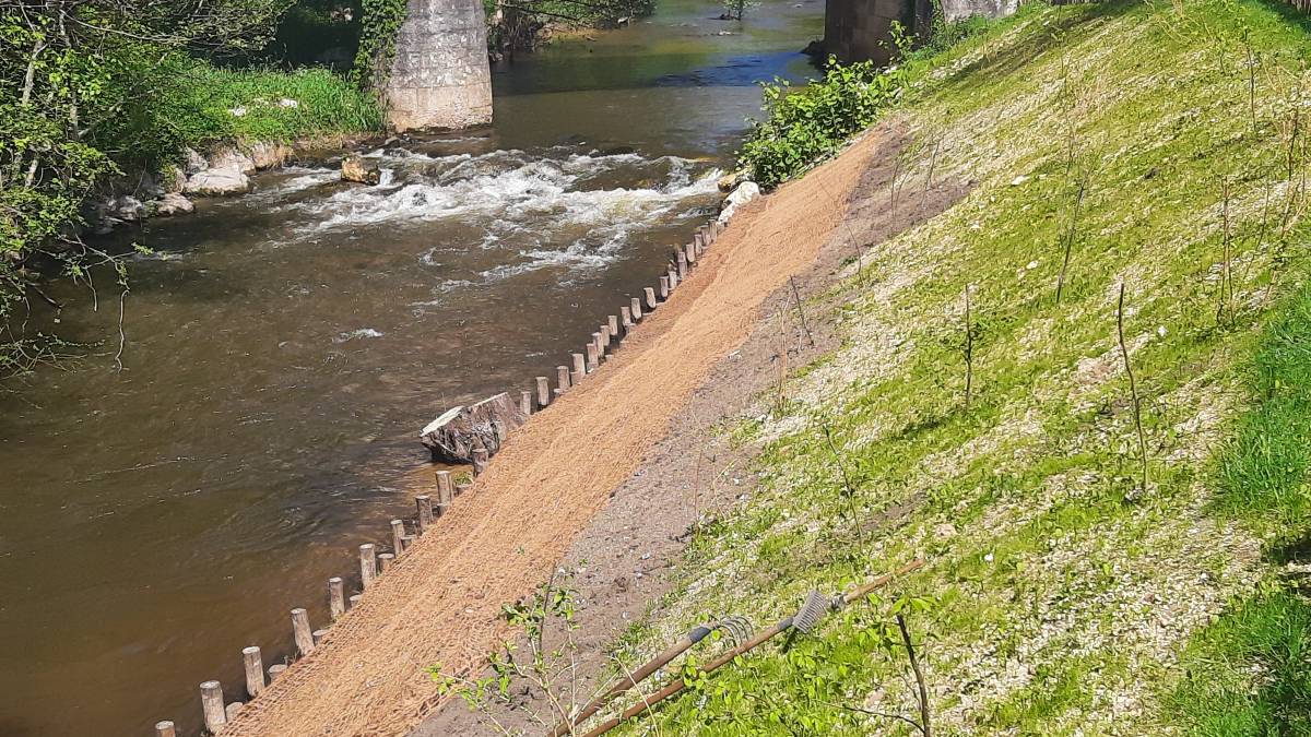 Un peu plus en aval, les 24 et 25 Février 2026, en rive droite à l'amont du seuil du moulin seigneurial, le Syndicat du Midou et de la Douze a procédé à des plantations, en collaboration avec l'association les Ardits , (association rurale de développement de l'insertion par le travail) et la société Planfor.